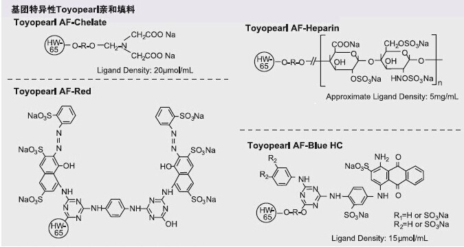 Toyopearl AF-Red-650M填料結(jié)合了普施安紅HE-3B(又稱活性紅120)。這種填料用于純化核苷酸依賴酶,脂蛋白,纖維蛋白溶酶原,多肽,激素和細(xì)胞毒素。