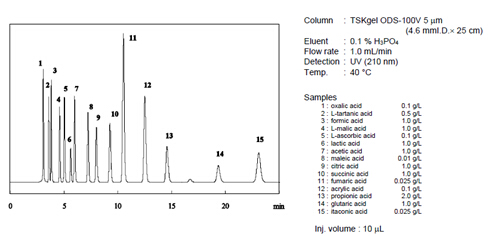 使用TOSOH公司的反相柱ODS-100V,就能同時(shí)分離各種有機(jī)酸。