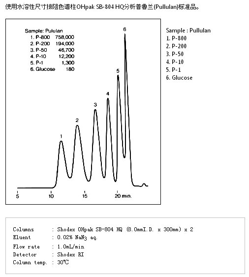 SB-804 HQ色譜柱是聚合物基質的水溶性SEC色譜柱,適用于各種分子量范圍的測定。溶劑可用DMF替換(除SB-802 HQ和SB-807 HQ以外),可分析極性聚合物。SB-804 HQ、SB-805 HQ可用于測定明膠的平均分子量。