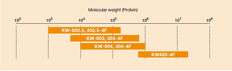 KW-803色譜柱是硅膠基質的水溶性SEC色譜柱,適用于蛋白質和酶的分析。