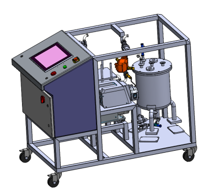 ? ?QuikSep AF中試型全自動(dòng)超濾系統(tǒng)是采用衛(wèi)生級(jí)隔膜泵或作為循環(huán)輸液?jiǎn)卧诒煤蟆⒛ぐ鼮V過(guò)端和回流端分別配壓力傳感器,配合回流端的氣動(dòng)比例調(diào)節(jié)閥實(shí)現(xiàn)恒定跨膜壓TMP,根據(jù)客戶工藝需要可選配在線流量計(jì)、UV、電導(dǎo)、pH,集成不銹鋼衛(wèi)生補(bǔ)液罐,罐體帶稱重、攪拌、噴淋頭在位清洗,配合蠕動(dòng)泵可現(xiàn)實(shí)自動(dòng)補(bǔ)液功能。