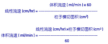 對體積不同的柱子來說,體積流速不能直接用作比較,一般都換算成線性流速,再做比較: