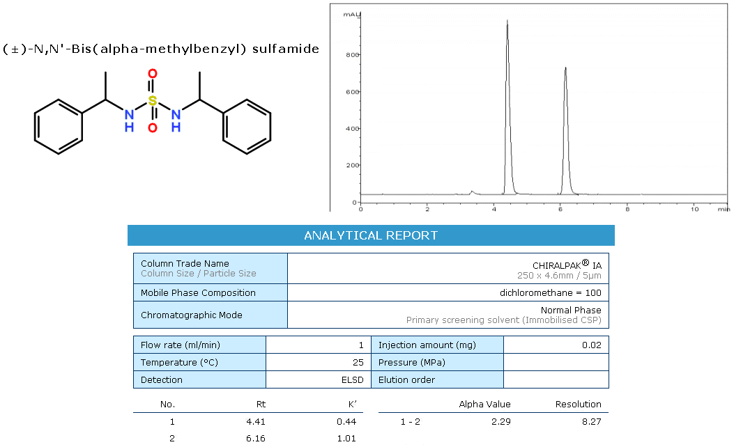 IA耐溶劑型手性柱,硅膠表面共價鍵合有直鏈淀粉-三(3,5-二甲基苯基氨基甲酸酯)。 溶劑使用無限制,廣泛的溶解條件,可使用任何互溶的溶劑作為流動相、溶解樣品、手性柱再生。