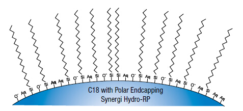 Synergi Hydro-RP反相色譜柱是極性端基封尾的C18固定相,提供極強(qiáng)的疏水選擇性和少量極性選擇性。